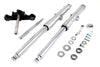 Hard chrome 41mm fork assembly with polished sliders for single disc applications. Hard chrome 41mm fork assembly with polished sliders feature a chrome top tree a black lower stem and internals installed to accept a single 11-1/2 inch disc. Forks are 32-1/4 inch long from top tree to axle position. Assembly includes neck bearings top nut and axle kit. Assembly accepts 5 piece chrome tin fork cover set for the authentic look. Order fender wheel and tin set separately.