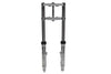 Fork assembly chrome with chrome sliders measures stock length 31 inch. Stock fork assembly hard chrome with chrome sliders includes all internals installed with a chrome triple tree set. Unit accepts 11-1/2 inch single disc. Order fork installation kit separately. This assembly can also be used on 1948-1984 FL 1971-1984 FX and 1986-1999 FLST.