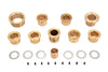 Cam cover bushing kit includes cam and gear shaft bushings and bearings with lock pins and thrust plate.