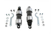 Chrome 14-1/4 inch shocks are nitrogen charged with multi stage dampening and adjustable spring load. Feature chrome springs and caps with a black body. Shock is 1-1/4 inch longer than stock length Warning:Installing a lowering kit or shorter shocks will decrease initial ground clearance. The motorcycle will be lower to the ground and care should be taken to avoid bottoming especially over bumps or in turns.