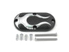 Black inspection cover with chrome flame. Screws not included.