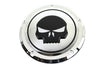 5-hole derby cover features a chrome finish with a skull design.