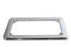 Chrome 4 inch X 7-1/2 inch maltese cross license plate frame.