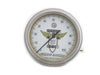 Police special speedometer has a ratio of 1:1 and features a replica white face with black 0-100mph numbering and gold highlights and Stewart Warner wing graphics. Face diameter is 3-7/8 inch. *NOTE: Speedometers feature the replica Stewart-Warner graphics as original and are not endorsed or manufactured by Stewart-Warner.