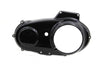 Black primary cover trim is open derby type. Trim fully covers the existing primary and is secured in place by the 5 existing screws.