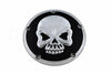 Chrome 5 hole derby cover with a skull design.