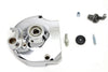K&E chrome sprocket cover kit includes sprocket cover clutch pushrod adjuster nut kick starter spring stud clutch worm release lever and transmission shifter pawl spring.