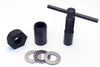 Jims sprocket shaft bearing installer tool is used to instal l flywheel assembly into left crankcase Timken bearing. If using this tool on a 1977-up XL we require using the 2.500 inch and 2060 inch sprocket shaft bearing installer tool.