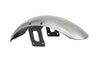 Front fender is raw constructed of a steel shell riveted to a steel bracket. Features a smooth type construction. For use on 19 inch wheels. We suggest pre-fitting the fender prior to painting. The spacing of the mounting holes measure 2-5/8 inch center to center.