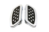Chrome billet streamliner footboard set features rubber inlay with a diamond design. Mounting bracket features 8 inch spacing.