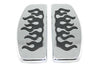 Chrome billet 'D' shaped footboard set features black rubber molded inserts with a flame design. This footboard set can also be used on 1941-1973 FL. Mounting bracket features 10 inch spacing.
