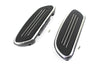 Black passenger streamliner style footboard set features 1-piece aluminum construction body and includes rubber inserts. Order pins separately. *NOTE: Black footboard has chrome trim ring aorund the rubber pad.