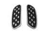 Passenger footboards includes right and left black rubber pads with chrome diamond design.