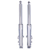 Assembly features chrome sliders with springs hard chrome fork tubes and components installed. Assembly has an overall length of 26-3/4 inch and is for dual disc applications fits 1 inch axle. Sold as a pair.