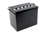 H-12 battery cast is plastic as original battery with a removable top. Kit features a mock plastic top that will house most smaller batteries and mounts like an original battery. Mock battery box is actually an inchempty inch black plastic battery case and top. The strap top and side cover can hold battery in place. Remove plastic separators in case to fit the smaller battery of your choice. The smaller battery must be fitted inside: spaced insulated and connected to terminals. *NOTE: Must order top OE side cover and strap separately. *NOTE: Internal of empty battery case will house an anti-gravity FXD or XL hi-output battery. *NOTE: Remove as many as 6 separate plates for battery installation. Fit and insulate with foam as required for battery installation. Battery terminals of the inchinstalled inch battery must be connected to the two terminal tabs on the mock battery. Keep the actual battery terminals from the (H-12) mock battery terminals from making any contact.