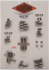 Customize a bike without having to completely disassemble it, Kit adds detail and a custom look with ease, Groups of polished stainless steel fasteners covering many visible areas of the motorcycle, Front fender mount and trim, rear saddlebag supports, floorboards, engine guard, triple tree pinch, fork tube covers, axle cap, Wiring harness tab on frame neck, mirrors, kickstand, shifter arm, levers & linkage, brake pedal, Rear master cylinder, mount, cover & brake line bracket, crankcase (visible bolts only), starter, Made in the U.S.A.