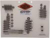 Hand-polished stainless steel engine kits are designed to provide a custom and detailed look with easy installation, Five groups of fasteners will detail all your engine covers with a lasting shine, Diamond Engineering's special hex flange rocker box bolts are included for Twin Cam models, Includes fasteners for primary, inspections and inner primary; cam and points; oil pump or oil line cover, filter mount and sensors (Dyna and Touring models) or oil filter plugs and sensors (Softail Twin Cam); lifter blocks; and rocker boxes, Made in the U.S.A.