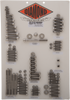 Customize a bike without having to completely disassemble it, Groups of polished stainless steel fasteners covering the engine, transmission and the most visible areas of the motorcycle, Kits add detail and a custom look with ease, Kits include fasteners for primary, inspections and inner primary; cam and points; oil pump or oil line cover, filter mount and sensors (Dyna and Twin Cam FLHT) or oil filter plugs and sensors (Softail Twin Cam); lifter blocks; rocker box; coil and circuit breaker covers (Dyna); transmission side cover; oil filler (FLHT models); transmission top cover; handlebar clamp, switch housings and master cylinder; front fender or front fender trim and fuel tank (FLHT models); rear fender rail or swingarm pivot blocks and rear floorboard brackets (FLHT models), Made in the U.S.A.