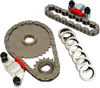 Kits allow engine builders to update early style mechanical cam chain tensioner Twin Cam® engines to the late style hydraulic cam chain tensioner systems while mixing and matching components, Whether using a Feuling camchest kit with conversion camshafts, Feuling conversion camplate oiling system with stock style 99-06 camshafts and or conversion camshafts with a combination of factory, SE®, Delkron® or S&S® oiling systems, these kits offer endless combinations, Kits include: Cam and crank sprockets, sprocket alignment spacers, inner and outer cam chains, inner and outer hydraulic tensioner assemblies, Made in the U.S.A.