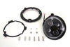 Headlamp bulb unit features an LED 12 volt bulb with a white halo encircling a black lens. Will fit most 7 inch headlamps. LED headlamp unit includes black contoured 7 inch headlamp rim and mount ring. Order connector harness plug separately.