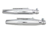 Tapered muffler set with slotted track chrome end clamps and strap mounting features a chrome finish. Set has baffles but are not removeable. Mufflers include embossed speed lines a Wyatt Gatling exclusive! 1-7/8 inch end clamps included. Mufflers are 2-1/2 inch outer diameter in center section to accept clamp. *NOTE: Mufflers can be mounted to exhaust bracket or T inch bolts with strips that are provided. **CAUTION: These exhaust products are not legal for sale or use in California on pollution controlled vehicles. These products are intended for non-highway only.