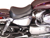 The contour solo seat is constructed on a steel base plate covered in naugahyde. Seat is equipped with 2 threaded holes in the rear of the plate for direct frame mounting and uses the included bracket to secure seat. Uses stock mounting screws not included. Seat will fit 3.3 gallon gas tanks.