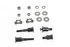 Spring fork rocker stud set features a black finish with parkerized hardware. Set of four. Set includes 2 long with slot (OEM #45676-30) 1 short with tip (OEM #45674-30) and 1 short with slot (OEM #45675-30). For use on 45 Solo models with 3/8 inch axle and inside rockers. Bushings sold separately.