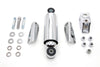 Bolt on Spring Fork shock assembly with brackets. Assembly is for use on custom aftermarket Spring Forks. V-Twin MFG offers a shock assembly for Spring Forks front ends. This chrome shock includes mounting hardware and brackets. The shock bolts onto the Spring Fork acting as a dampener absorbing some of that inchbounce inch for a smoother ride on custom Spring Forks. Measures 6-3/4 inch eyelet to eyelet.