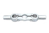 Spring Fork Inline top triple tree with ears features cast steel construction with white zinc finish. Exact replica of the Original VL design. Accepts dog bone or flanders risers with 1 inch outer diameter ears. Inner diameter of holes for mounting on 1936-1957 Spring Forks must be honed out to 1.05 inch in order to fit most Spring Forks. The length from one side of the center hole to the other center hole measures 2-1/2 inch. Is designed to fit VL & RL spring fork 1930-1936 and 1936-1957 inline Big Twin and 1945 spring fork. *NOTE: Designed for 1930-36 VL + RL inchI inch beam type forks but will work on later models with modification.
