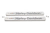 New Old Stock AMF gas tank emblem set features aluminum construction with black painted lettering with mount screws included. Hole spacing measures 6-11/16 inch center to center.