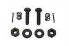 Parkerized mount kit includes 2 hex screws springs cotter pins and washer. Attaches the inner primary to the oil tank and chain guard on top and to the frame tab. Rear chain guard stud attached to fender mount tab by 1/4 inch-24 hex nut not indlued. *NOTE: Oil tank inner primary and chain guard order for 1936-1952 EL and 1941-1957 FL models. Oil tank tab is between inner primary tab and chain guard. Use correct bolt and spring.