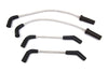 Sumax spark plug wire set is grey with a brown tracer. A combination Kevlar Helically Spiral Wound Core at 350 ohm per foot resistance delivers greater spark energy while improving power idle and fuel efficiency. Cloth jacket is rated at 450F and resists heat oil and abrasion. These wires will work on all models with point or electronic ignitions. Set includes 16 inch & 17 inch leads with 90 plug boots and 180 coil boots.