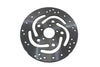 Front brake disc features a fine ground natural finish surface in a vented slotted style and is interchangeable with stock discs.