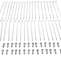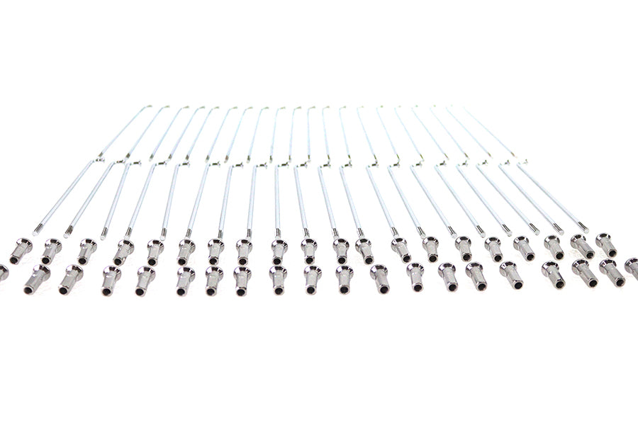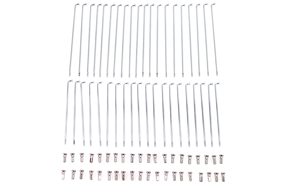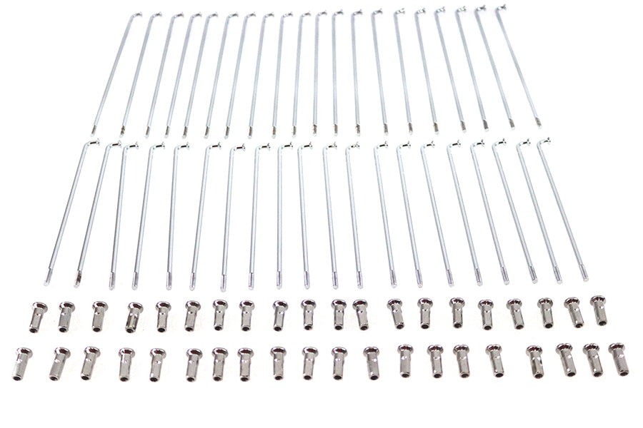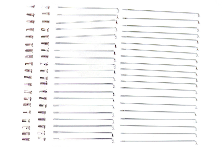 Front OE type spoke set features a chrome finish. Set includes 20 long and 20 short spokes with 40 spoke nipples.