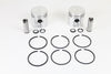 Standard piston kit with standard rings 2 wrist pins and 4 circlips. For 45 inch models. Kit includes hasting rings. The piston measures 2.742 inch with a .002 inch clearance and can be bored out to a maximum of 2.745 inch. Top ring measures 3/32 inch thick and the oil ring measures 1/8 inch thick. *NOTE: This piston has the exact dimensions of the army surplus genuine piston!