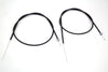 Replica style throttle or spark cable set has a vinyl casing length of 54 inch and includes the inner wire. Set of two. Cable has vinyl casing spool and inner cable is included as original. Spool end diameter measures 13/16 inch.