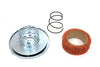 6 inch air cleaner backing plate includes copper mesh element and coil spring. The copper mesh must be installed on the perforated tube on the backing plate. Carburetor face air cleaner mount holes have a 12-24 thread for fillister screws.