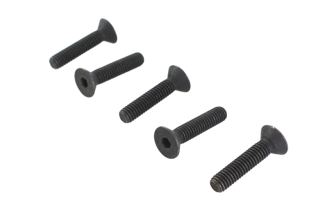 Flat head allen screws 5/16 inch-18 x 1-1/2 inch featuring a black finish with a coarse thread.