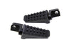 Adjustable male end mount footpeg set features a racer design and alloy construction with a black finish. Can be made offset or inline because the mounting block is adjustable.