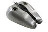 Gas tank has a left side petcock opening and has a fuel capacity of 3.5 gallons. This flat side tank features a screw type bung. *NOTE: Must order ratcheting style gas caps separately. Petcock fitting should be masked or plugged during painting for easy installation. Carefully check the tank for flaws and fit before painting. Do not grind or sand the seams or joints. Clean the inside of the tank. It is suggested to pressure test and use a tank sealer. We suggest using Kreem gas tank combo kit to clean condition and seal to help stop leaks and prevent corrosion. *Note: UPS may consider this part as packaged inchoversize inch for shipment as compared to the actual weight which will result in higher shipping costs.