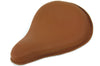 Replica brown leather solo seat is on a stock formed steel ribbed baseplate with rolled sewn edge and riveted under strip. Rear bolt holes 6-5/8 inch center to center to mount stock type T bar or custom mount kits.