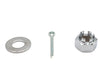 Chrome castle nut kit has 5/8 - 18 UNF and includes washer and cotter pin for rear axles on 1989 and up models.