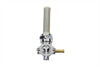 Chrome petcock with 90 right outlet and 13/16th nut and includes nylon filter screen washer and reserve position. For use with stock gas tank or custom tanks with a 22mm outside thread. Designs are made for a seated position on the motorcycle with the hose outlet facing a direction to ease fuel line hookup.