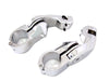 Chrome footpeg mount kit with 1-1/4 inch clamps for installation of highway bars. Forged alloy kit for engine guards with male pegs short angled.