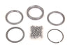 Clutch hub bearing kit includes 5 parts plus 6 balls bearings. This is a 6 piece kit: 2 races 1 cone 1 snap ring 1 square ring and 1 set of balls.