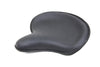 Replica black leather solo seat features cobbler edge with black stitch detail and rivet strip. It has a steel ribbed base plate with brackets in place as original. The non-vented baseplate accepts stock type seat T bar mount systems which are sold separately. Mount hardware kit can also be ordered separately.