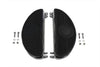 Stamped steel chrome footboards feature a bullseye design in a classic half moon with inchshaker inch ISO mount cushion area. Black pads are included. NOTE: Shaker boards feature ISO rubber buds on under side of the rubber board metal pad this isolates the vibration from the footboard to the driver. Mounting bracket features 9-3/4 inch spacing.