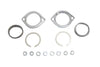 Exhaust flange kit with snap rings and tapered mesh gaskets. Exhaust flange kit so when you buy new pipes there is no need to take your old flanges off your old pipes. These exhaust flange kits are complete with new gaskets snap rings nuts lock washers and chrome flanges. These are the finishing touch to any exhaust installation.