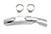 Rear chrome heat shield has worm clamps included. Shield has a cutout for crossover pipes.