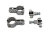 Footpeg mount kit allows male type footpegs to be mounted to 1-1/4 inch diameter engine bar.